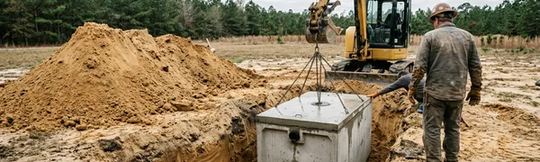 Septic installation on a Wayne County property involves more than digging a hole and setting a tank. Unlike large national chains, we're based right here in Jesup in Wayne County — and our familiarity with local soil evaluations, EPD permit requirements, and southeast Georgia's coastal plain conditions directly shapes every septic tank installation we do. Georgia EPD requires a permitted soil evaluation, engineered design approval for alternative systems, and final inspection before a system can be placed in service. Wayne County's coastal plain sandy loam soil is generally favorable for conventional gravity systems — but lot size, setback requirements, seasonal high water table, and proximity to wetlands all shape what system design is viable on a specific parcel. Getting the septic system installation design right the first time avoids costly modifications later.