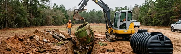 In Wayne County, Georgia, abandoned septic tanks must be handled per EPD guidelines — typically either pumped and filled with sand or crushed and buried to prevent collapse. Simply leaving a pumped tank in place without proper abandonment is not compliant. We handle old tank abandonment as part of the septic replacement project, and the abandonment is documented in the project records.